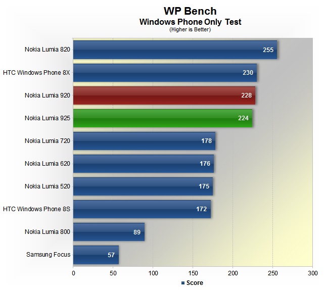 To compare the performance of the Lumia 925 to other smartphones on the market, I ran two benchmarks: WPBench that tests CPU, GPU and memory against other Windows Phones, and Futuremark’s Peacekeeper in-browser benchmark.